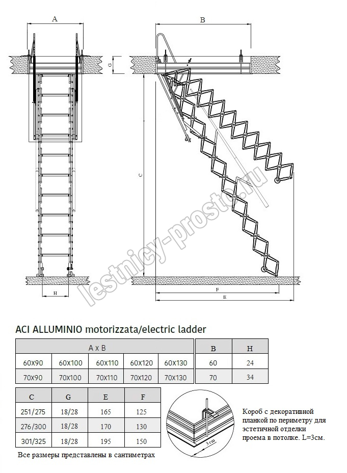 Чердачная лестница с электроприводом. Fantozziscale Motor Base 60×110 см