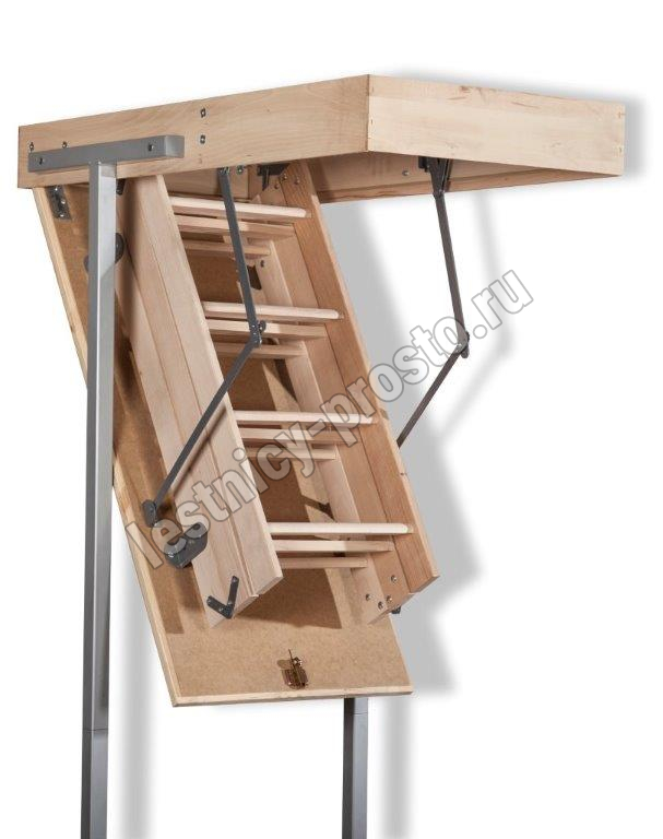 Специальные пружинные механизмы позволяют открывать и закрывать люк плавно. Лестницу легко собрать самостоятельно.
