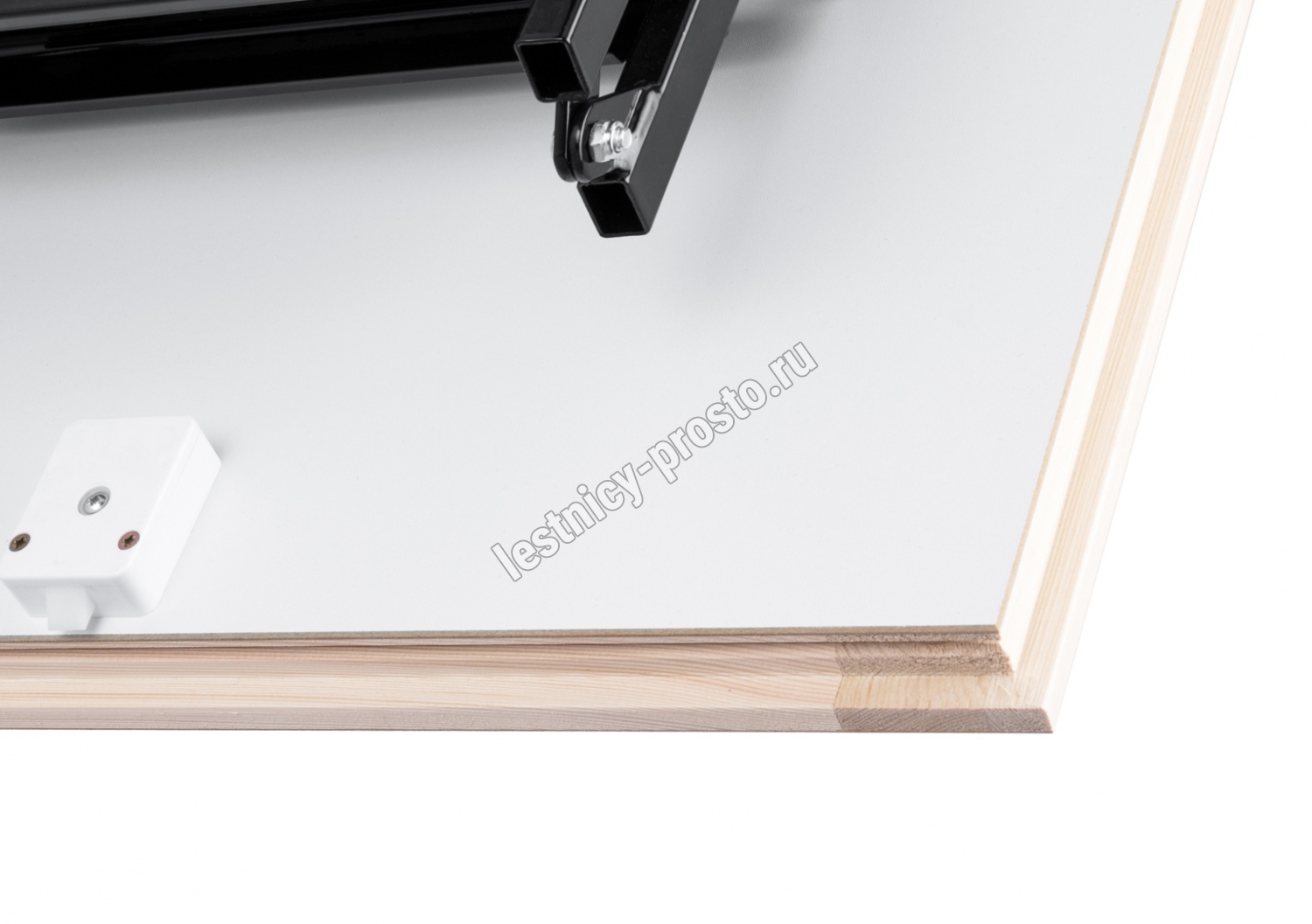Лестница складная трехсекционная. Рабочая поверхность полностью выполнена из металла и покрашена порошковой краской. Термоизоляционная крышка типа "сэндвич", толщиной 47 мм, утеплена пенопластом, облицована с двух сторон ДCП белого цвета.