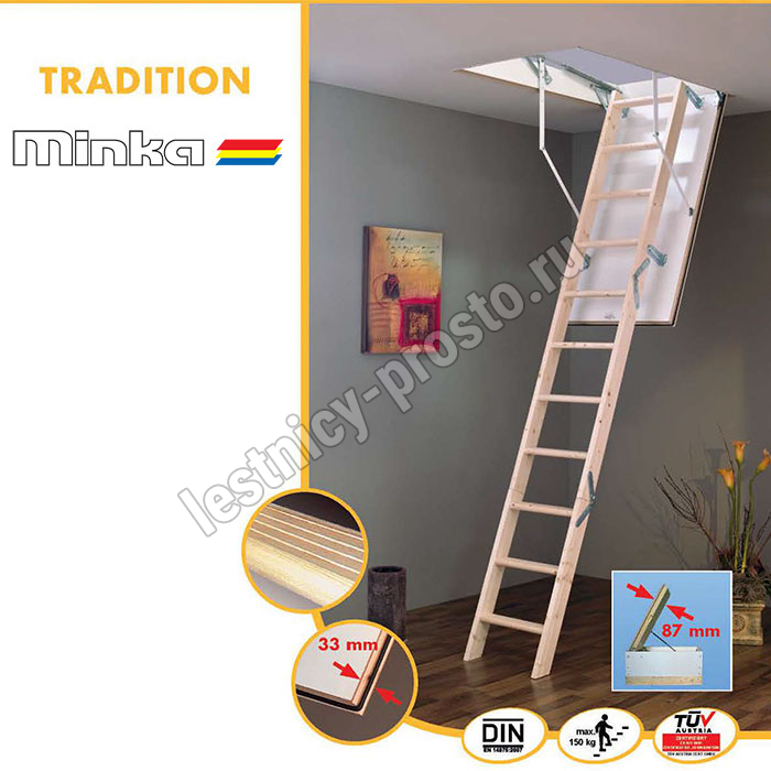 Чердачная складная лестница MINKA TRADITION 70×120 см, h-280 см