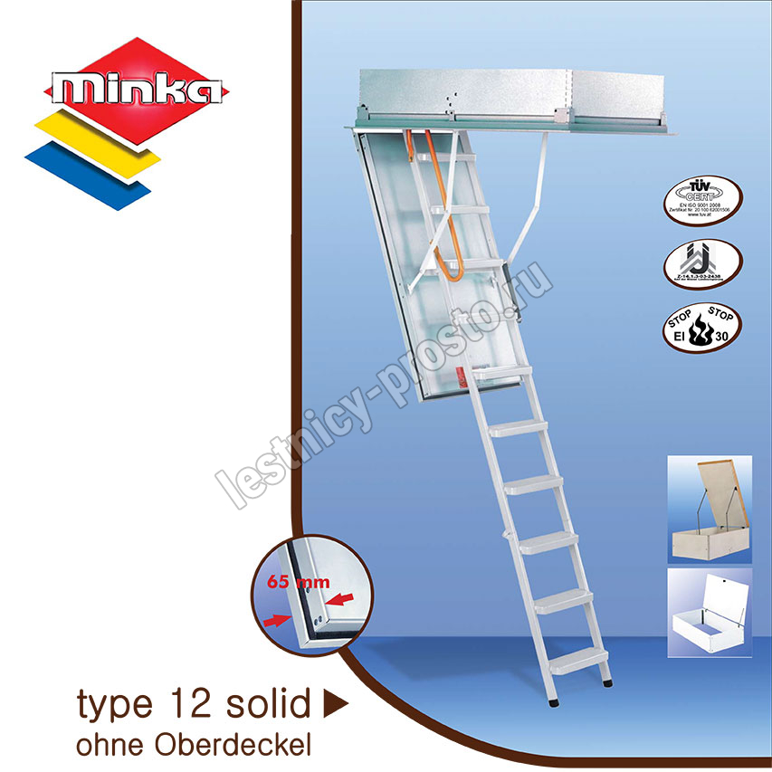 Чердачная складная лестница MINKA TYPE 12 SOLID OHNE OD 70×120 см, h-275 см