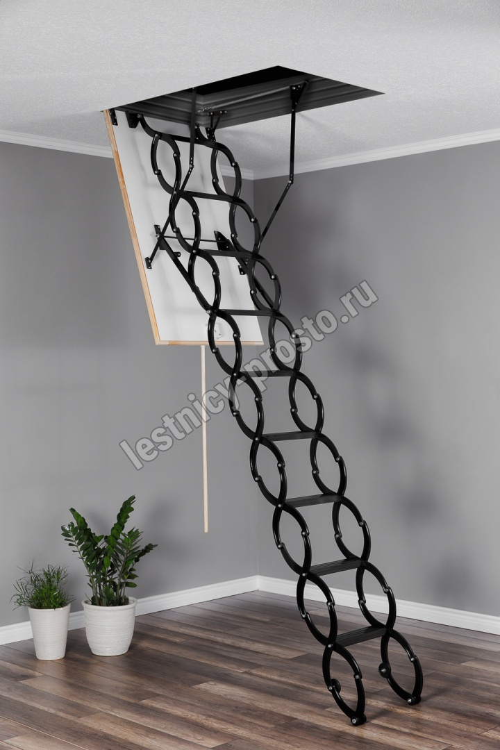 Все элементы лестницы выполнены из экологически чистых материалов и обработаны веществами, не содержащими тяжелых металлов. На ступенях антискользящие насечки. Короб лестницы изготовлен из металла. Термоизоляционная крышка типа "сэндвич" утеплена пенопластом, облицована с двух сторон ДСП белого цвета. Короб люка с уплотнителем. В комплекте деревянный стержень для открывания лестницы.