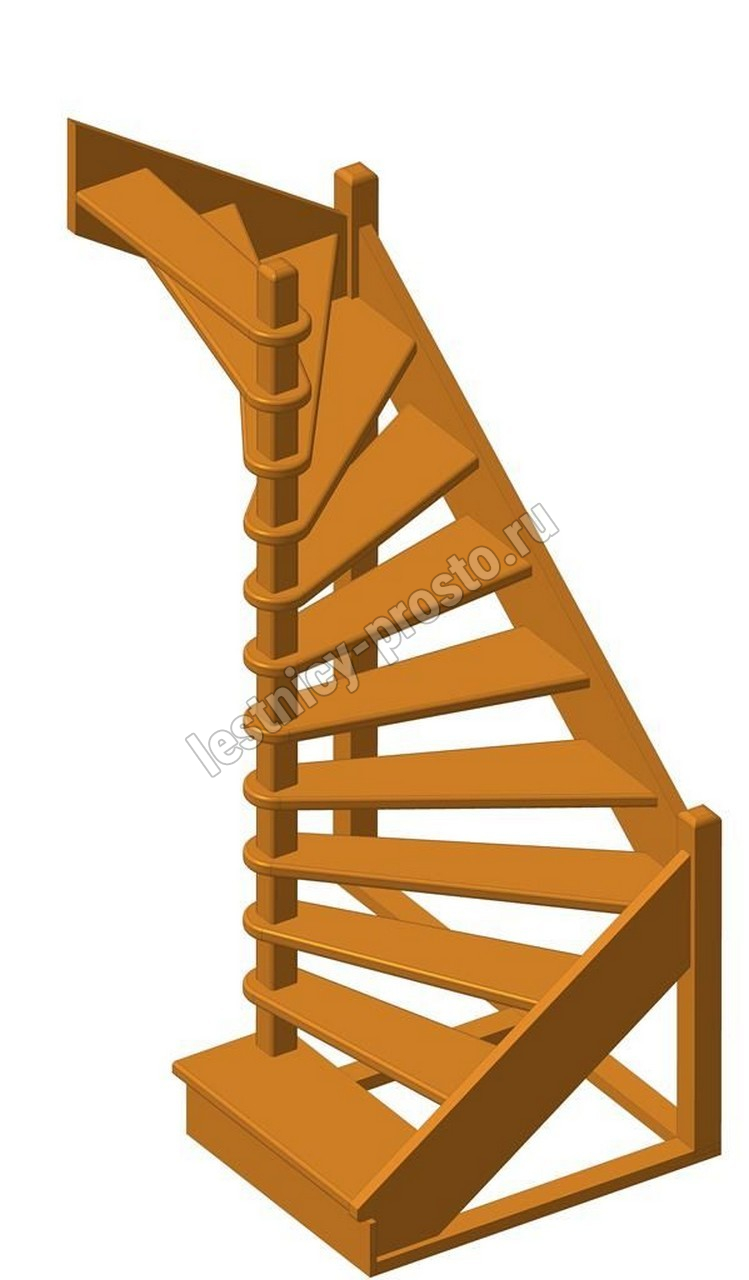Деревянная межэтажная лестница ЛЕС-01 2340-2540 проем 1630-900, Лиственница