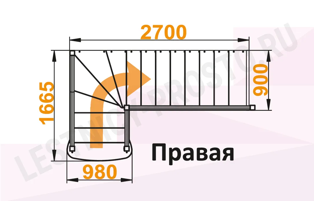 Лестница К-021м с поворотом направо