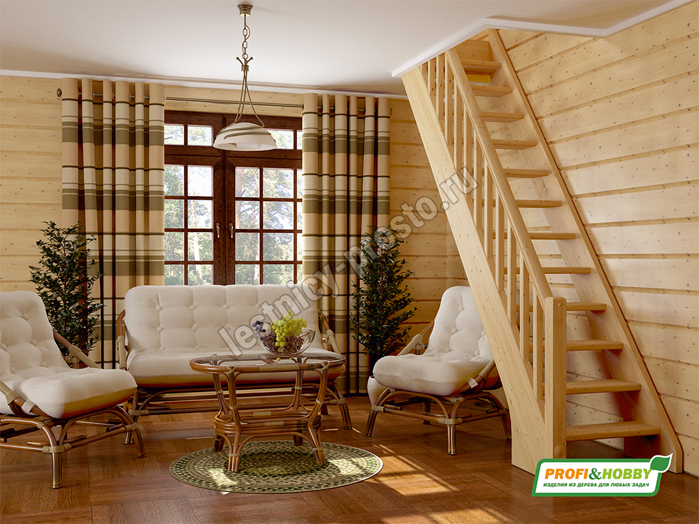 Традиционная лестница, простая в сборке. В процессе установки этой универсальной модели, ограждение можно смонтировать с необходимой стороны (слева или справа).
