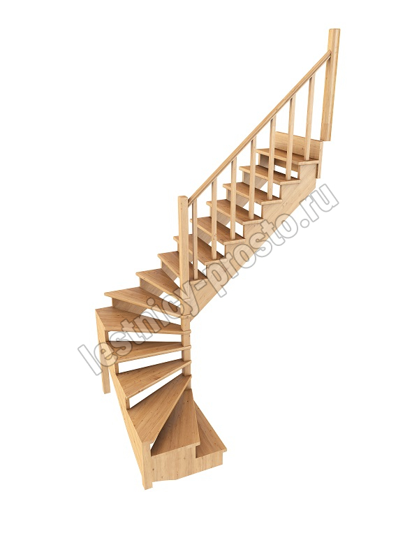 Ступени и поручень лестницы изготовлены из сращенного бука; тетивы, столбы, балясины - из сосны. Возможно изготовление данной модели полностью из бука. Базовый комплект включает в себя деревянные элементы лестницы и ограждения без какого-либо покрытия.