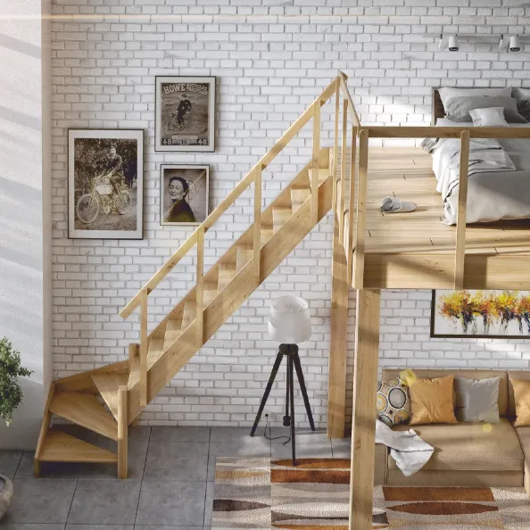 Ступени и поручень лестницы изготовлены из бука, остальные элементы из сосны.