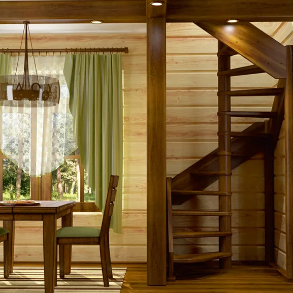 Ступени и поручень лестницы изготовлены из бука, остальные элементы из сосны.
