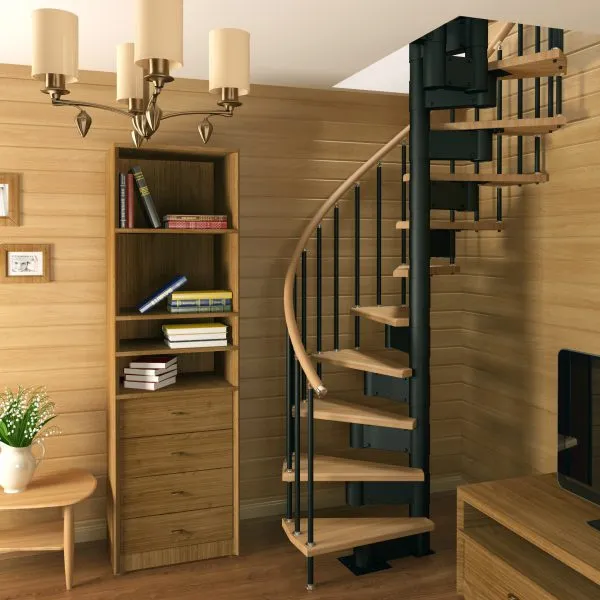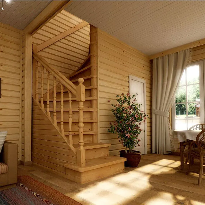 Ступени и поручень лестницы изготовлены из дуба, остальные элементы из сосны.