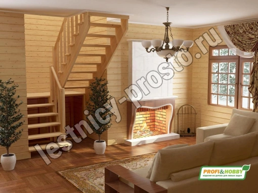 Материал: Дуб (ступени и поручень), сосна (косоуры, столбы, балясины)