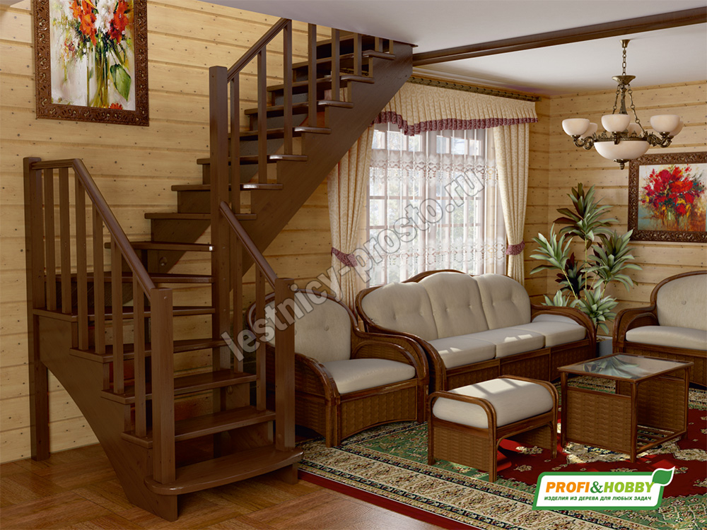 Ступени и поручень лестницы изготовлены из дуба, остальные элементы из сосны.