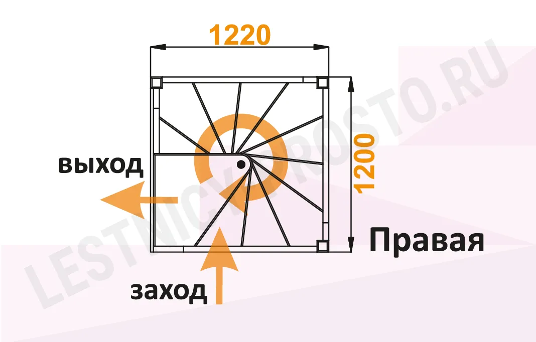 Схема лестницы ЛС-1.2хм с поворотом направо