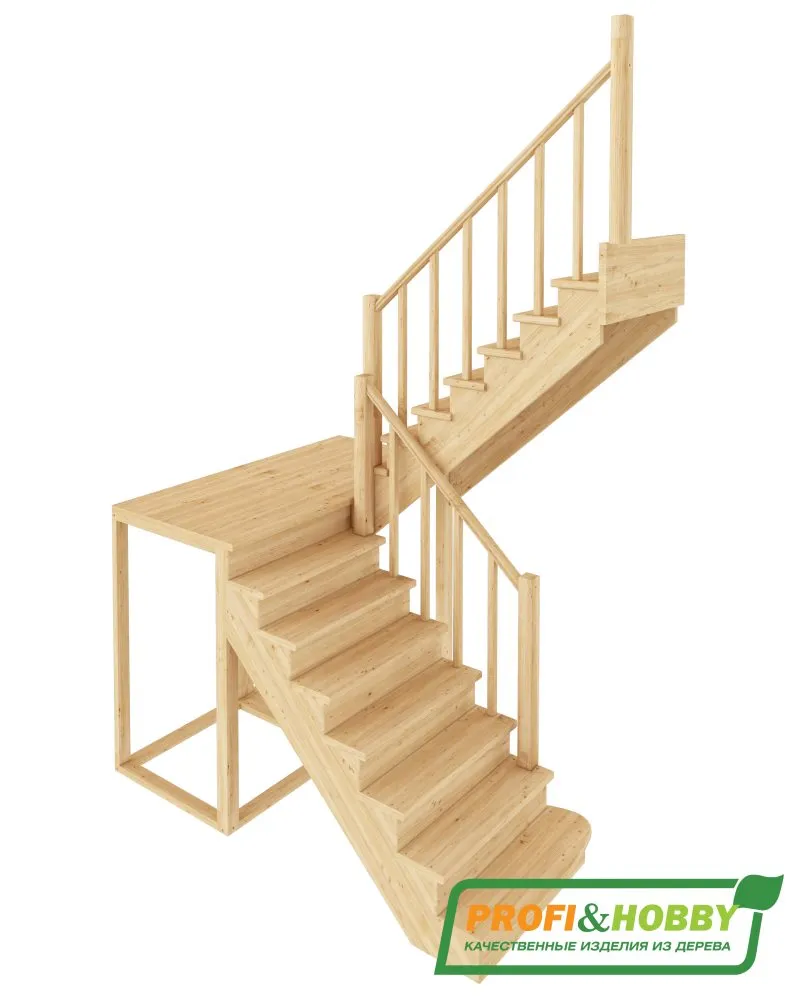 Комплект включает в себя деревянные элементы лестницы без какого-либо покрытия.