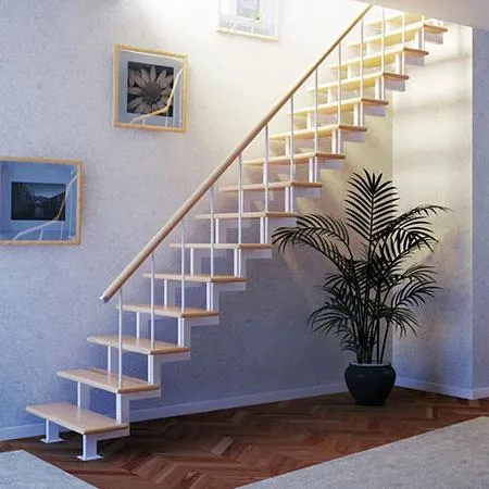 Базовый комплект включает в себя деревянные элементы лестницы с подступёнками и ограждения без какого-либо покрытия.