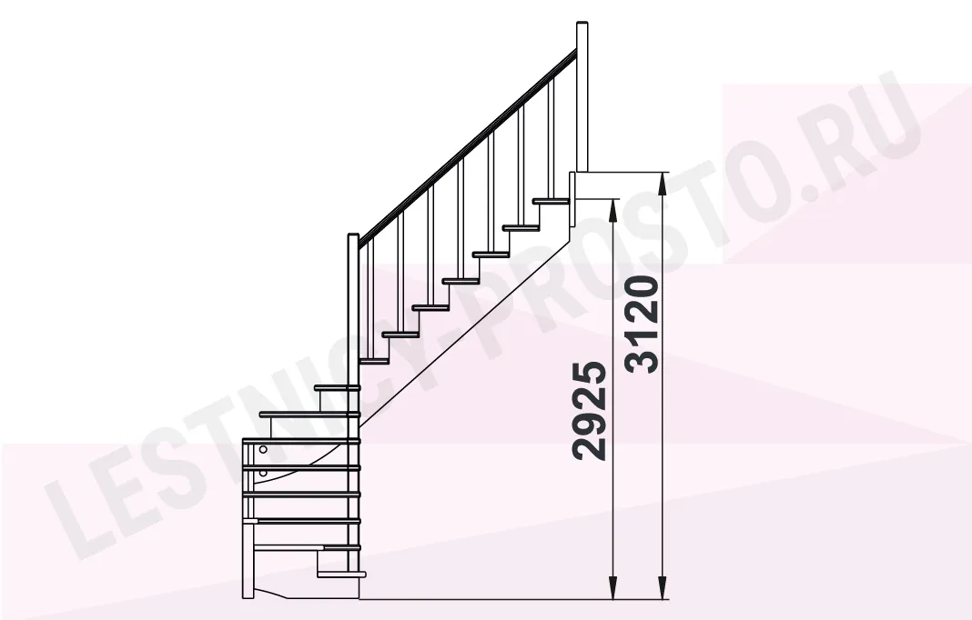 Базовый комплект включает в себя деревянные элементы лестницы и ограждения без какого-либо покрытия.