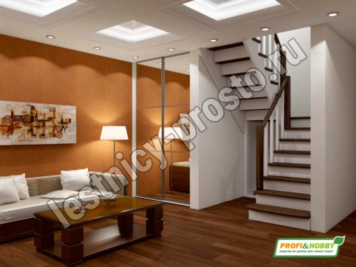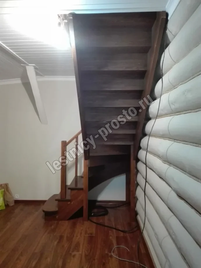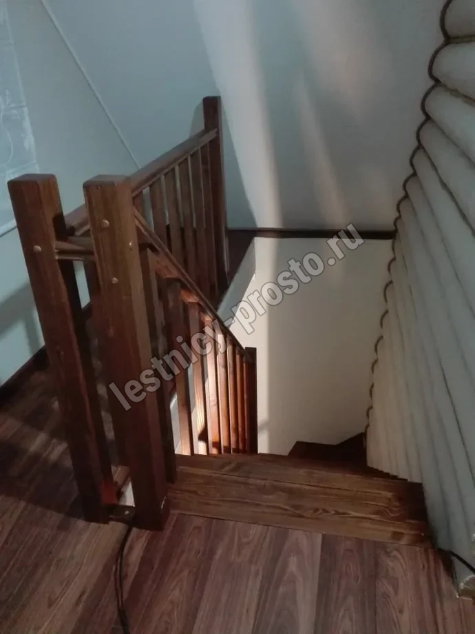 Обратите внимание! Данный вариант лестницы изготовлен из сосны эконом-класса, имеющей заметные серые/синие вкрапления цвета - это не отражается на прочности лестницы, но может быть заметно при покраске в светлые тона.