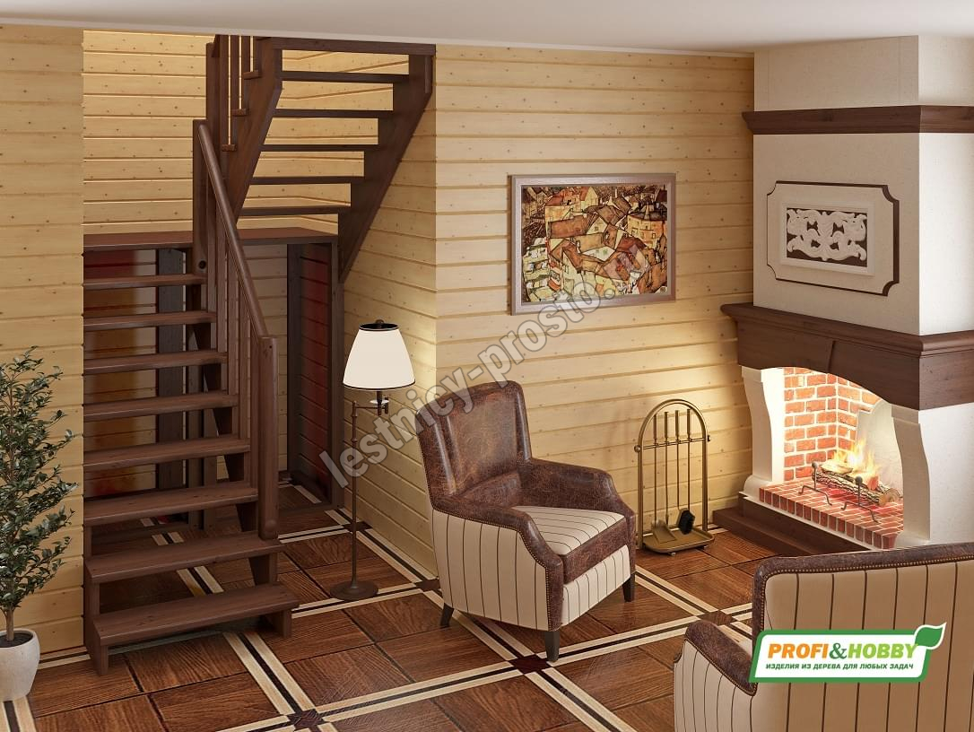 Лестница из сосны К-004М/2 с подступёнками под покраску