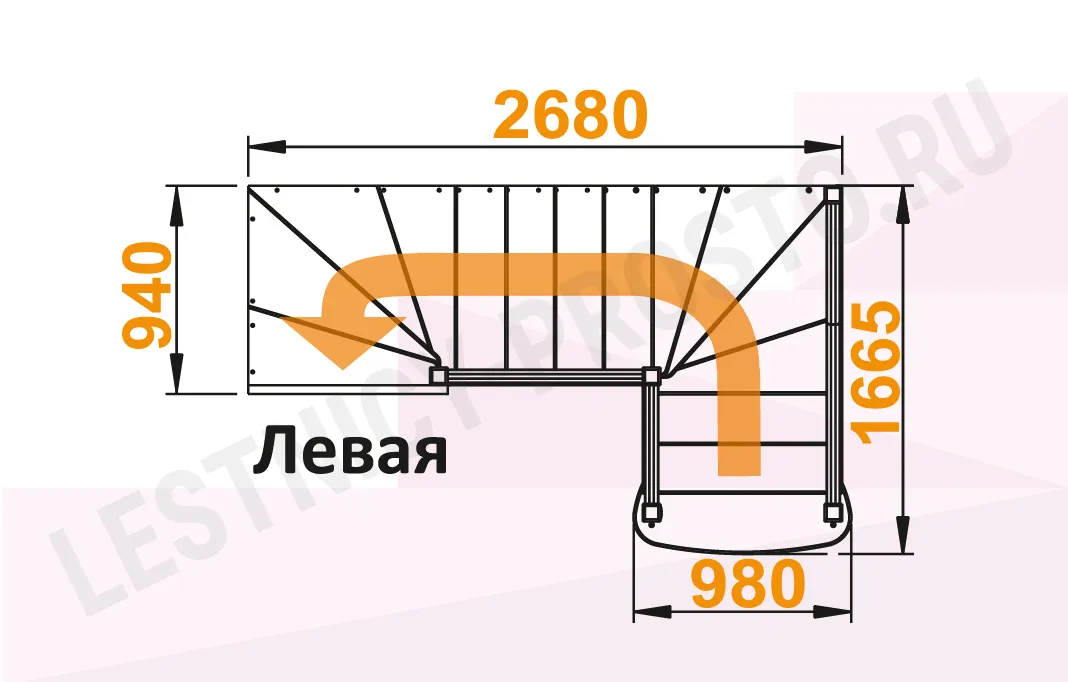 Лестница К-009М с поворотом налево