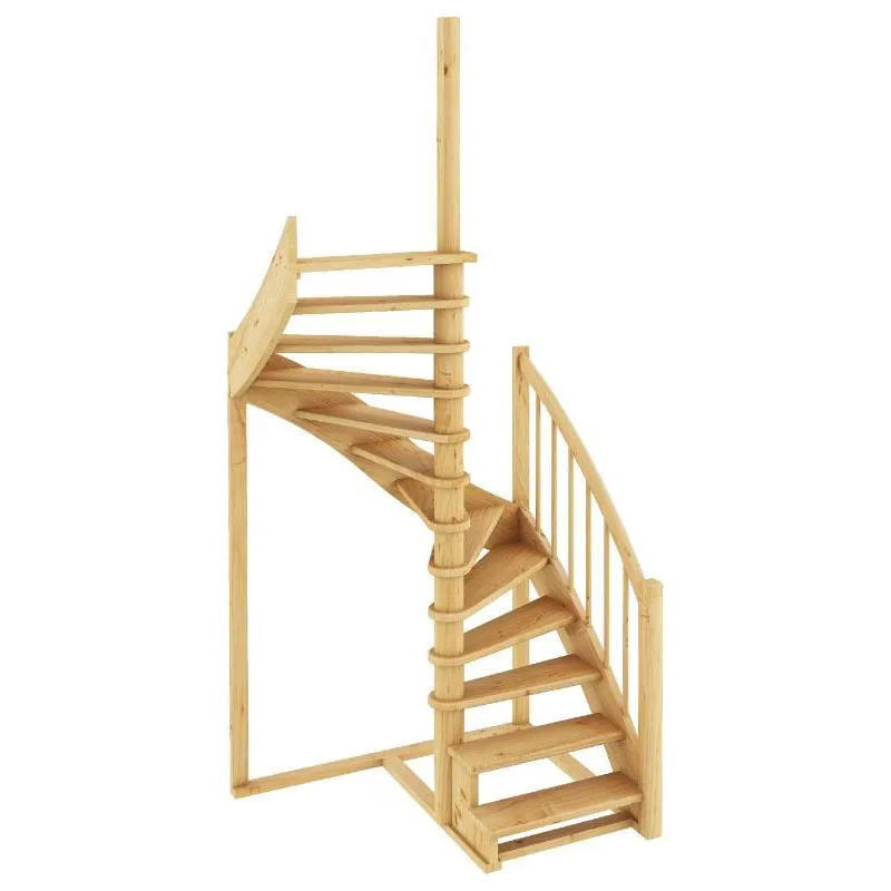 Базовый комплект включает в себя деревянные элементы лестницы и ограждения без какого-либо покрытия.