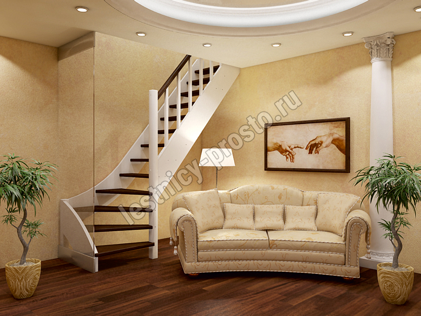 Лестница из сосны ЛС-07М/1 с подступёнками под покраску