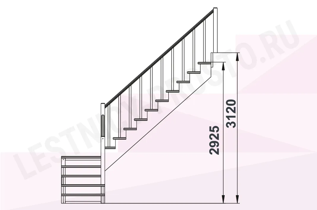 Базовый комплект включает в себя деревянные элементы лестницы и ограждения без какого-либо покрытия.