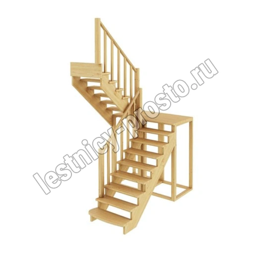 Материал: ясень (ступени и поручень), сосна (косоуры, столбы, балясины)