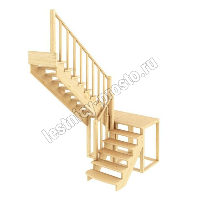 Материал: ясень (ступени и поручень), сосна (косоуры, столбы, балясины)