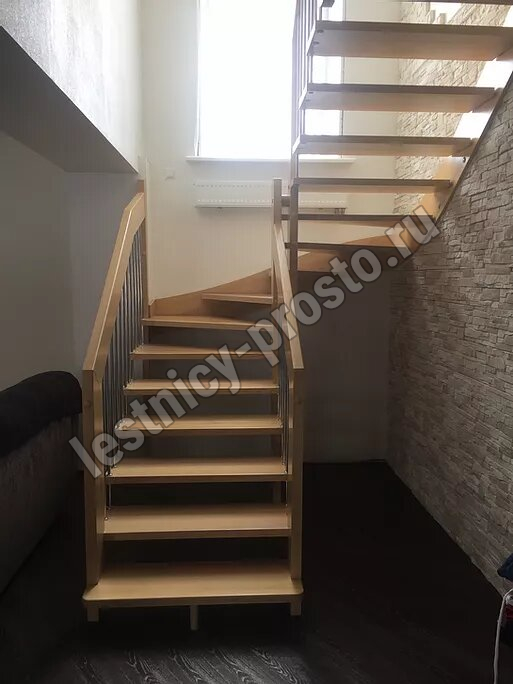 Надёжная современная лестница выполнена по немецкой технологии. Стоимость указана для лестницы с ограждением (с одной стороны); Поставляется в разобранном виде, в комплекте необходимый крепёж; Лестницу можно собрать самостоятельно; Так же, вы можете заказать услугу монтажа нашими специалистами; 4 вида породы дерева для изготовления лестницы: сосна, бук, ясень, дуб; возможна комбинированная лестница: из сосны (ступени бук, ясень, дуб); Деревянные элементы без какого-либо покрытия, отшлифованы, готовы к покраске. За дополнительную плату, вы можете изменить любые параметры, а именно: увеличить глубину ступени; увеличить ширину марша до 900 мм. и выше; заказать подступенки к лестнице; заказать отделку перекрытия (между 1-м и 2-м этажами); изготовить дополнительный промежуточный марш; заказать ограждение 2-го этажа; покраска в любой цвет или несколько цветов или покрытие защитными средствами; дополнение балясины из нержавеющей стали деревянными элементами; покраска балясин из нержавеющей стали порошковой краской в цвет RAL.