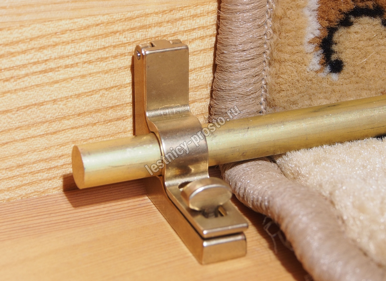 Ковродержатель комплектуется двумя держателями из латуни цвета золото, а также цельным прутком из латуни длиной от 171 до 200 см. Конструкция является сборно-разборной не требующей демонтажа креплений, что делает ее долговечной и очень удобной для чистки ковров и ковровых покрытий.