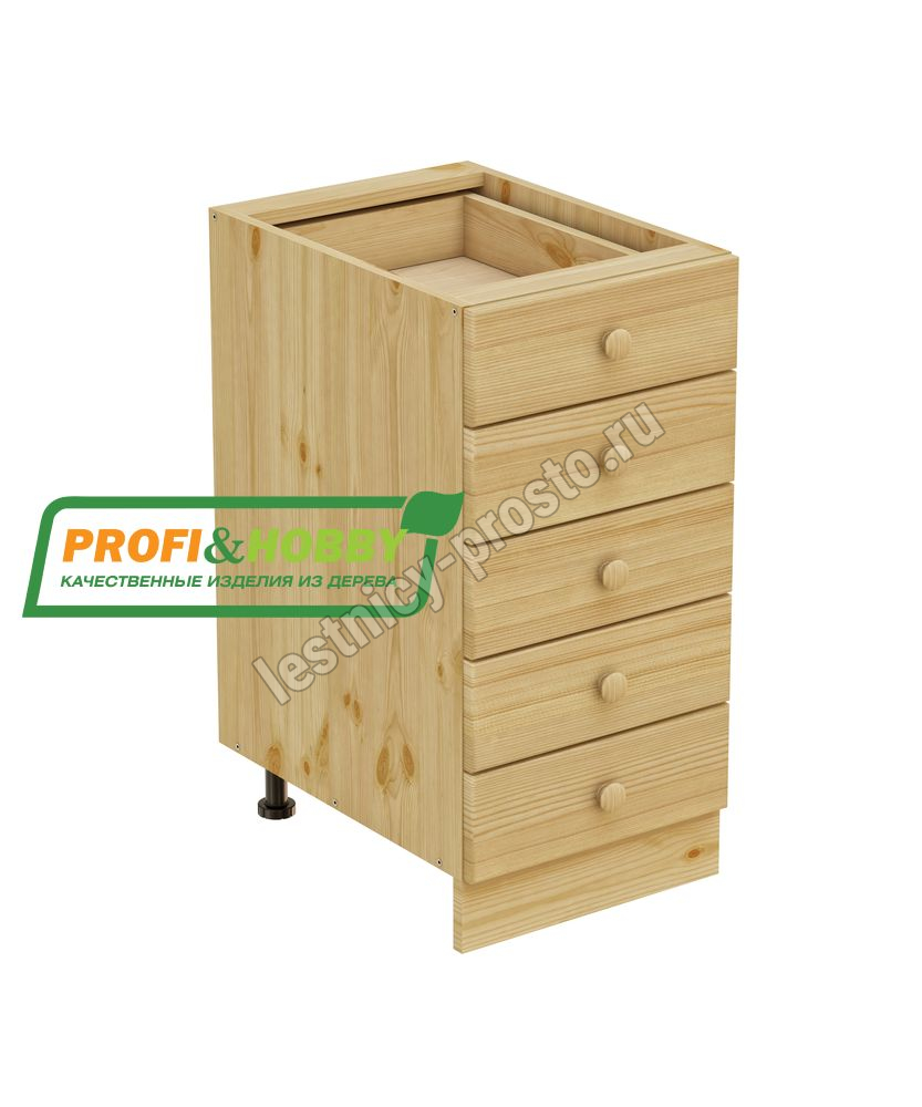 Тумба 5 ящиков 400 х 560 х 720 сосна, бесцветный акриловый лак