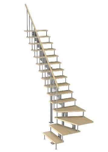 Поворот на 90° реализован посредством поворотных ступеней, высота поворота определяется параметрами вашего помещения и размерами проёма.