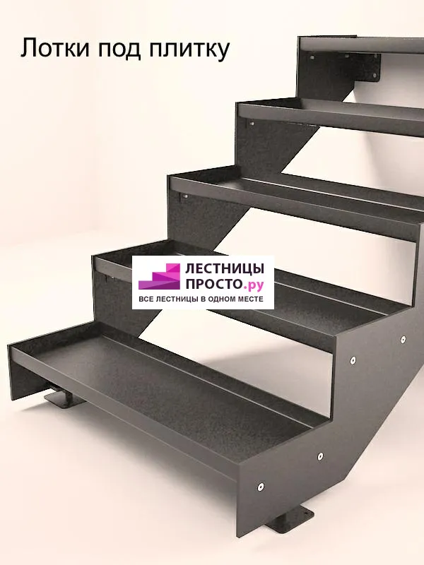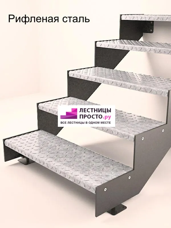 Покрытие порошковое, очень прочное и долговечное. Все детали каркаса крепятся с помощью болтов, благодаря чему Вы можете собрать каркас самостоятельно без применения сварки. В зависимости от ширины лестницы, каркас состоит из двух (ширина до 1 метра) или трех (ширина до 2 метров) опорных балок (тетив).