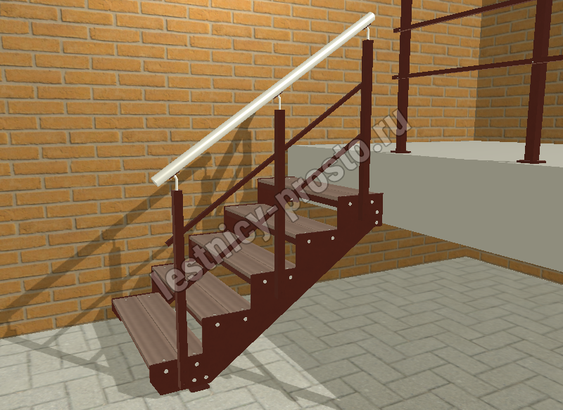 Надежный красивый каркас из толстого стального листа толщиной 8мм с оригинальным дизайном. Покрытие порошковое, очень прочное и долговечное. Все детали каркаса крепятся с помощью болтов, благодаря чему Вы можете собрать каркас самостоятельно без применения сварки. Ступени лестницы состоят из металлической рамки, обеспечивающей необходимую прочность, и покрытия из террасной доски ДПК (древесно-полимерный композит). Ступени не боятся воды и мороза, не теряют со временем свой внешний вид и не требуют ухода. Под заказ, возможно изготовление ступеней из других материалов, таких как: рифленая сталь, лотки под плитку, решетчатый настил, дерево. Базовое ограждение: крашеное или из полированной нержавеющей стали.
