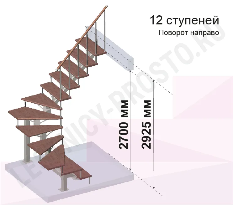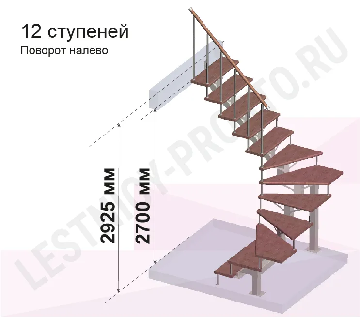 Высота лестницы 2700 - 2925 (12 ступеней) мм