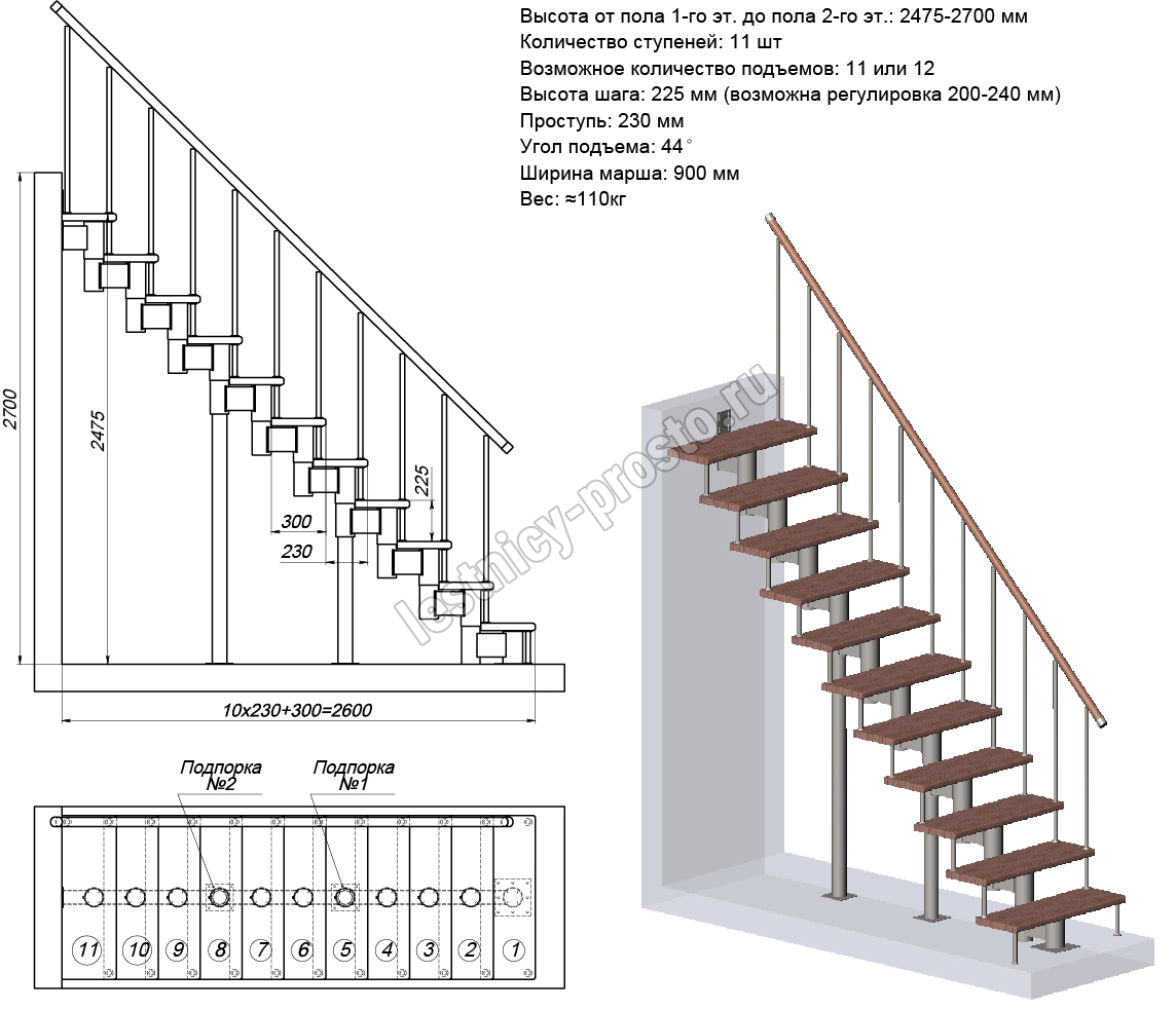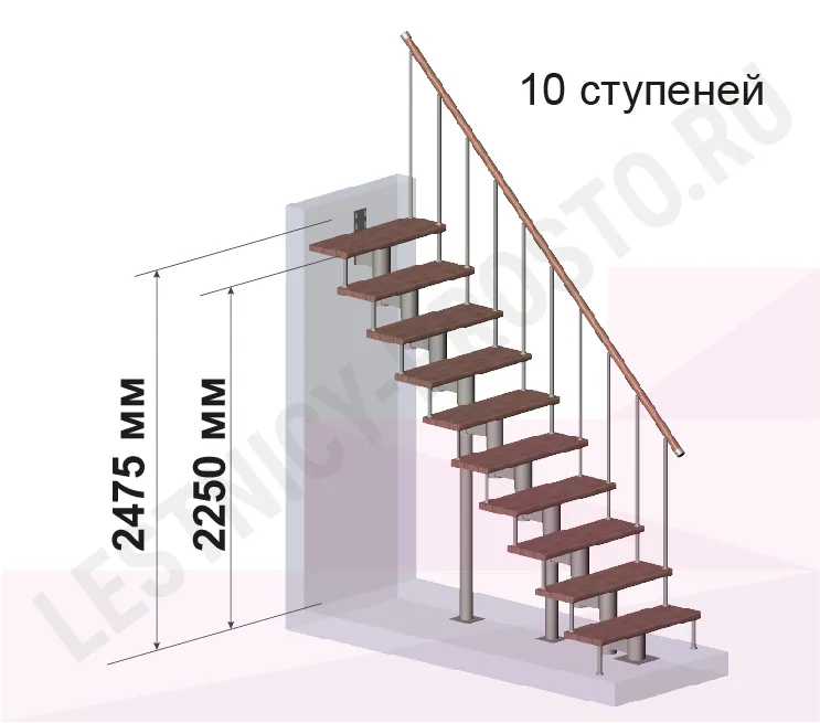 Модульная лестница PROSTO Module прямая/ h225 см