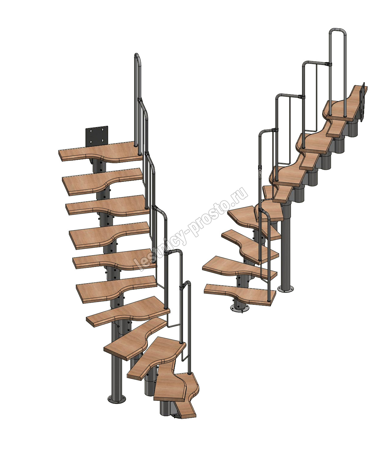Лестница Prosto Urban Black гусиный шаг 700 мм, h198-288 см (11 ступеней), бук