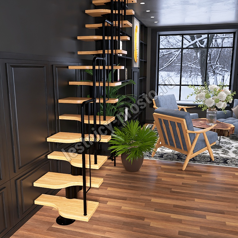 Лестница Prosto Urban Black гусиный шаг 700 мм, h198-288 см (11 ступеней), ясень