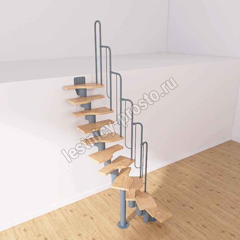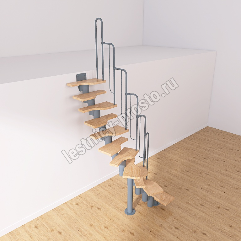 Лестница Prosto Urban Grey г-образная гусиный шаг 600 мм, h216-312 см (12 ступеней)