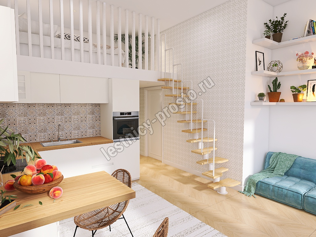 Лестница Prosto Urban White гусиный шаг 700 мм, h234-336 см (13 ступеней), ясень