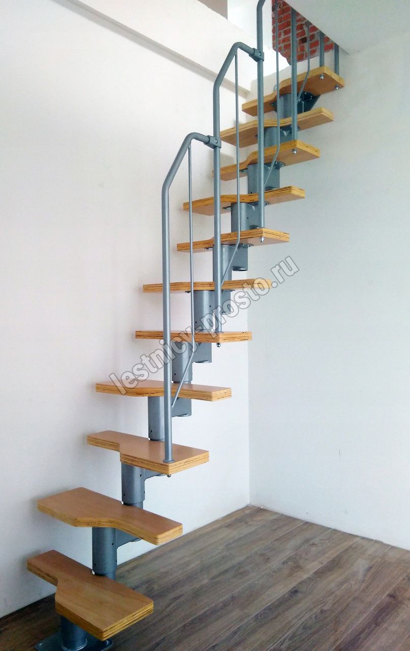 Модульность конструкции позволяет регулировать высоту лестницы при сборке и собрать необходимый поворот до 90 градусов. Ограждение устанавливается на любую сторону.