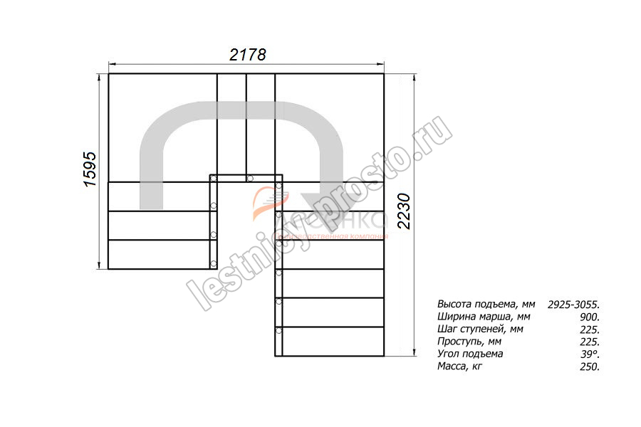 Модульная лестница Комфорт 225 2925-3055, Черный, Лиственница, Нержавеющая сталь