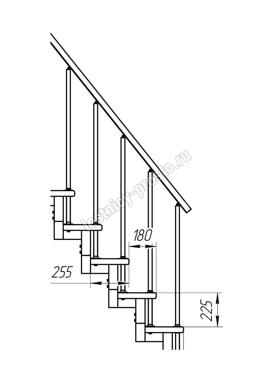 Модульная малогабаритная лестница Компакт 2025-2250, Черный, Сосна, Крашеная, Без Ступений