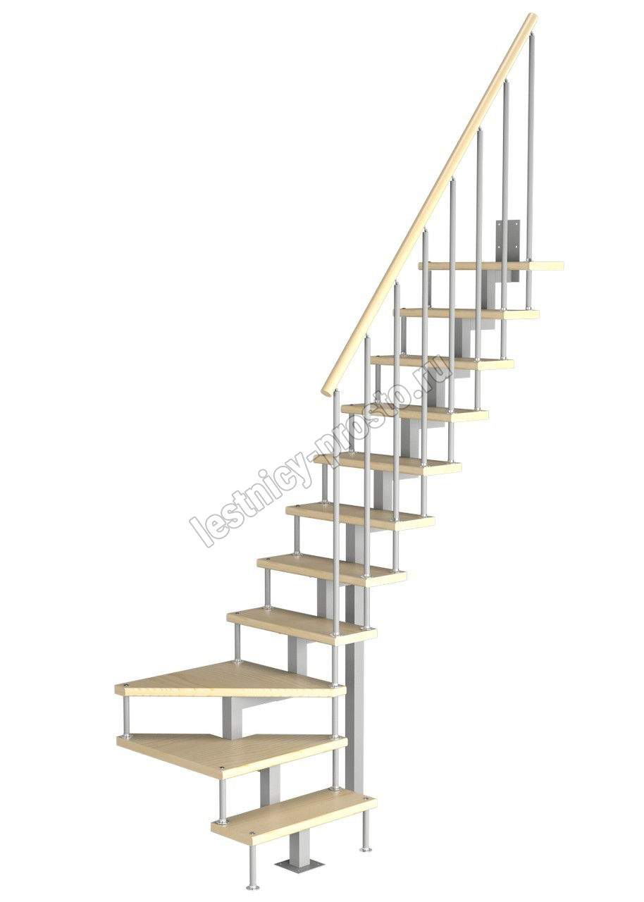 Модульная малогабаритная лестница Компакт 2475-2700, Серый, Бук, Нержавеющая сталь