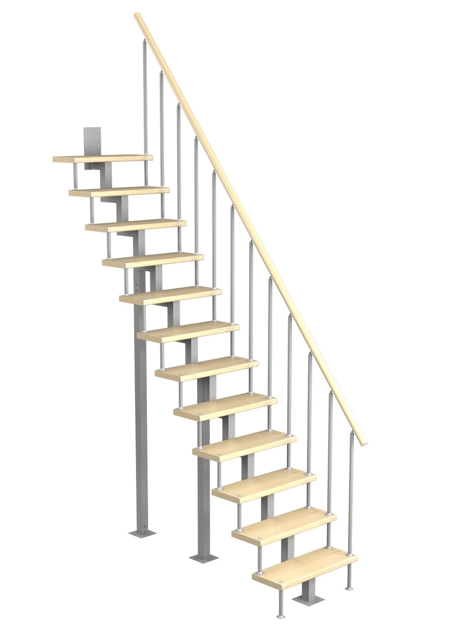 Модульная малогабаритная лестница Линия 2700-2925, Серый, Бук, Нержавеющая сталь