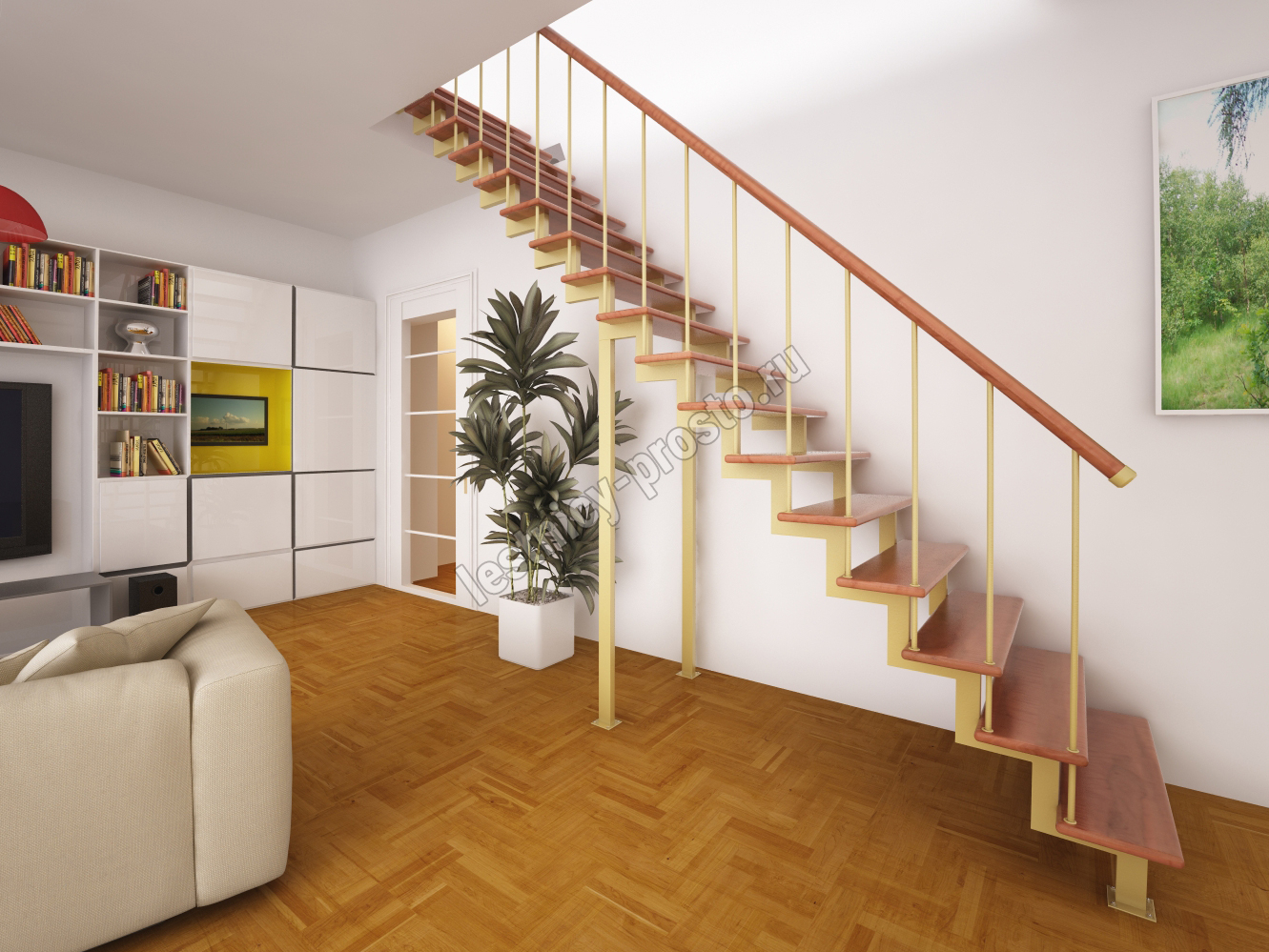 Лестница Prosto Due 40×80 прямая, ступени лиственница