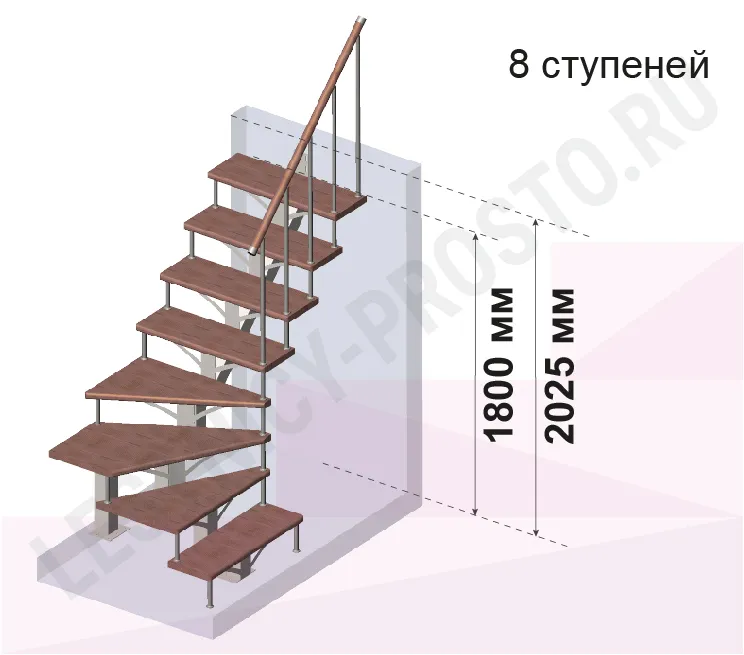 | Лестница PROSTO MONO Г-образная h270 см, ступени хвоя |