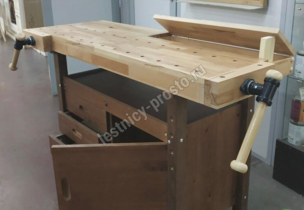 • Столешница и тиски выполнены из массива берёзы