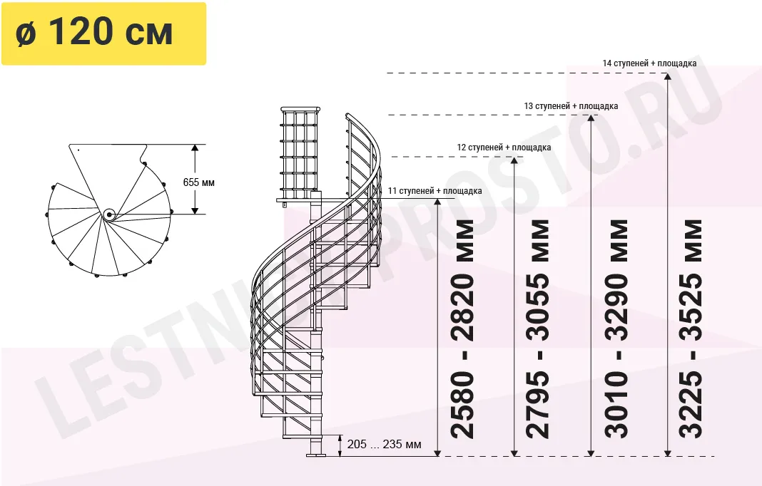 Высота лестницы 2580 - 3525 мм