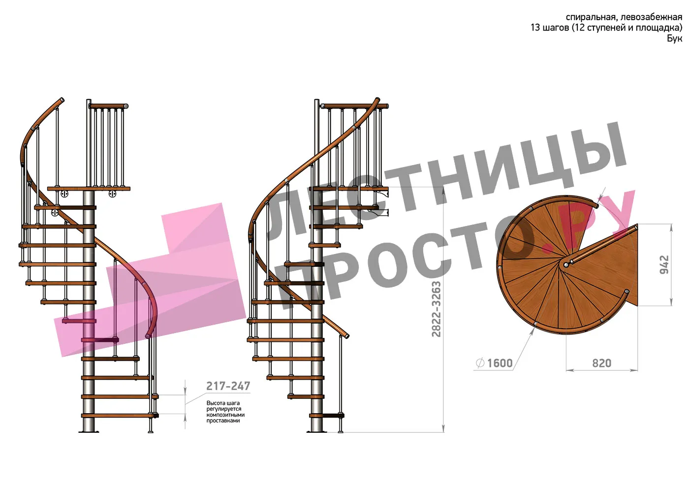 Правая, d=160см, 12 ступеней + площадка