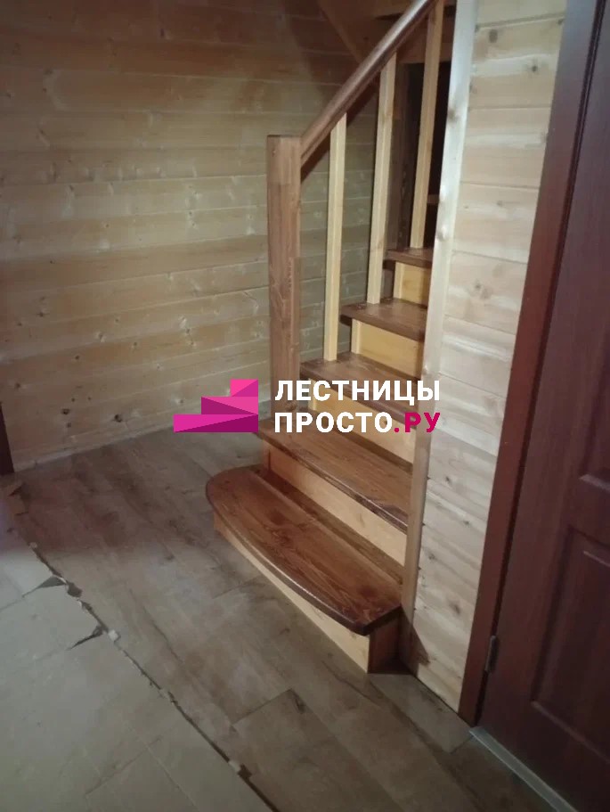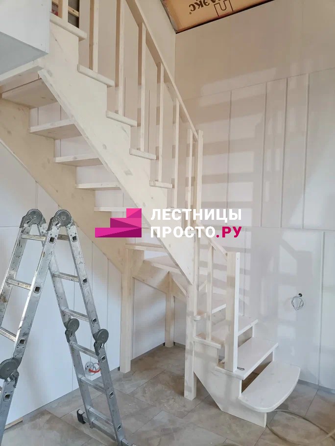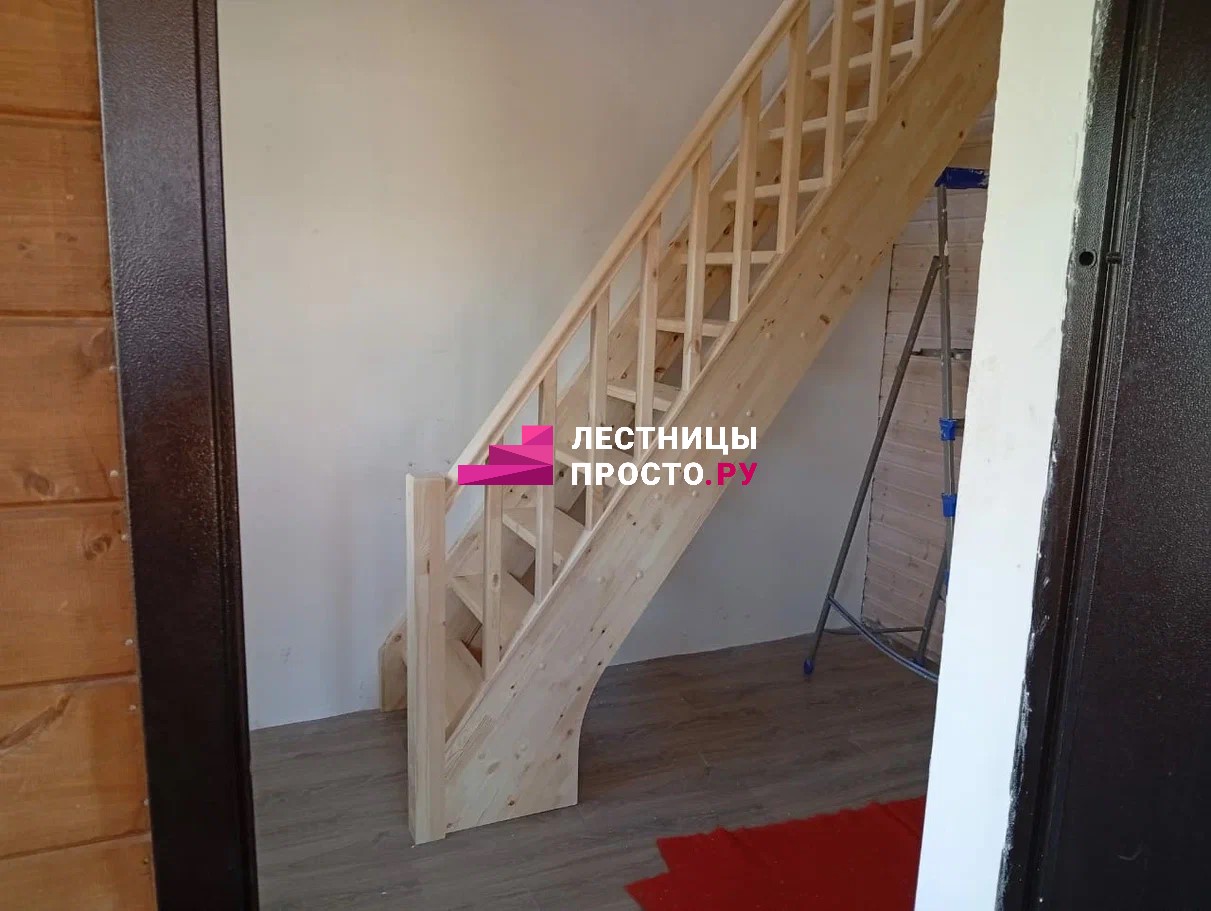 Лестница из сосны с поворотом без покраски